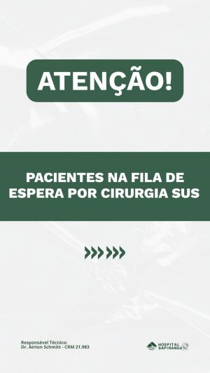 Com o objetivo de reduzir o tempo de espera para as cirurgias eletivas realizadas pelo Sistema Único de Saúde (SUS), o Hospital Sapiranga e as secretarias municipais de saúde estão reforçando a o alerta à população sobre a importância da atualização cadastral dos pacientes que aguardam por procedimentos. O contato eficiente é essencial para garantir que o agendamento das cirurgias ocorra com agilidade e que nenhum paciente perca a sua vaga por falta de retorno.