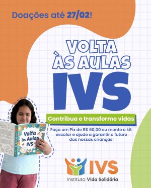 O Instituto Vida Solidária (IVS), com apoio da Associação Médica do Rio Grande do Sul (AMRIGS), lança uma campanha de arrecadação de material escolar voltada às crianças atendidas pela instituição. A ação tem como objetivo contribuir para o início do ano letivo e assegurar que os alunos disponham dos itens necessários para acompanhar as atividades escolares.