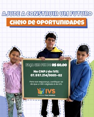 Para mais informações sobre como apoiar o Instituto Vida Solidária, entre em contato pelo telefone (51) 98065-9242 ou pelo e-mail ivs@vidasolidaria.org.br