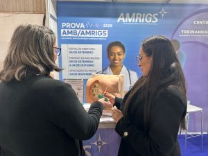 A Associação Médica do Rio Grande do Sul (AMRIGS), uma das patrocinadoras oficiais do congresso, esteve presente com um estande, apresentando os cursos do seu Centro de Simulação e Treinamento, a Prova AMB/AMRIGS de Residência Médica e o Prêmio AMRIGS de Melhores Práticas na Medicina 2025.