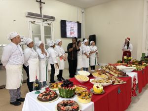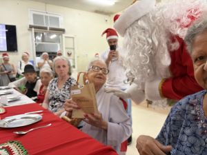 A magia do Natal tomou conta do refeitório do Asilo Padre Cacique na noite desta segunda-feira, dia 22 de dezembro, quando os moradores participaram de uma Ceia de Natal preparada com carinho e atenção. O encontro proporcionou aos idosos uma noite marcada por afeto, partilha e tradição, elementos essenciais em uma época que simboliza acolhimento e esperança. Os alimentos foram preparados com carinho pela equipe da nutrição e contou com subsídio de doadores.