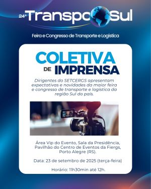 O encontro será uma oportunidade para a imprensa acompanhar em primeira mão as perspectivas do setor e as novidades da TranspoSul, que ocorre de 23 a 26 de setembro, reunindo marcas, lideranças e soluções estratégicas em transporte e logística.