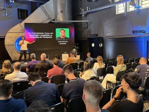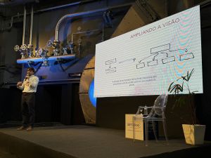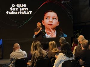 O futurista e estrategista de inovação Felipe Menezes iniciou a programação provocando os participantes a refletirem sobre como antecipar tendências e transformar incertezas em oportunidades. “Durante muito tempo, eu achei que a tecnologia resolveria tudo. Mas, a cada projeto, a cada empresa, fui entendendo que o verdadeiro avanço está nas perguntas que fazemos e nas conexões que criamos”, afirmou.