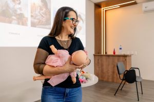 Durante a atividade, foram abordados aspectos práticos, emocionais e familiares. A enfermeira obstetra Laís Beck apresentou a linha materna de cuidado, explicando como funciona a maternidade do Hospital Sapiranga e o papel das equipes de enfermagem já na primeira hora de vida do bebê. A psicóloga perinatal Patrícia Wolff tratou da saúde mental materna e ressaltou como a maternidade envolve intensas transformações na identidade da mulher. Já a fonoaudióloga Magela Paz trouxe dicas práticas sobre pega correta, posições de amamentação, aumento da produção de leite e a importância da rede de apoio para que a mãe se sinta segura nesse processo.
