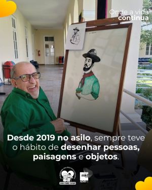 A criatividade também tem espaço garantido no dia a dia da instituição. Conhecido pelos colegas como Seu Bira, um dos moradores se destaca pelo talento para o desenho. Entre paisagens, caricaturas e ilustrações de objetos, suas criações chamam a atenção pela sensibilidade e pelo bom humor. Em eventos realizados no asilo, ele costuma retratar convidados com caricaturas, despertando sorrisos e tornando os encontros ainda mais especiais.