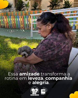 Um exemplo é a relação da moradora dona Efigênia com o cão Lupi, um dos companheiros de quatro patas que vivem no asilo. Com atenção e carinho, ela acompanha seus passeios, leva alimentação, cuida da hidratação e oferece companhia constante. O vínculo demonstra como a presença dos animais também contribui para o bem-estar emocional e para a construção de laços afetivos dentro da instituição.