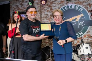 A presidente do IVS e diretora de Integração Social da AMRIGS, Dra. Dilma Tessari, conduziu a entrega de uma placa comemorativa, como forma de reconhecimento e agradecimento ao trabalho desenvolvido voluntariamente pelos músicos que trocam temporariamente o ambiente hospitalar pelo palco, transformando seu talento musical em um gesto de solidariedade.