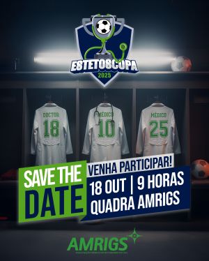 Integração, lazer e incentivo à prática de exercício são os principais objetivos da 1ª Estetoscopa AMRIGS de Futebol, que terá sua estreia no dia 18 de outubro, sábado, na quadra de esportes da sede da Associação Médica do Rio Grande do Sul (AMRIGS), em Porto Alegre. O campeonato, realizado na modalidade Society, reunirá até seis equipes de médicos em partidas que serão disputadas no formato todos contra todos, consagrando como campeã a equipe que acumular mais pontos ao final dos jogos.