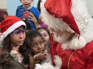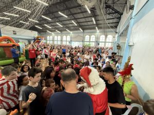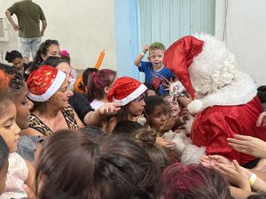 O encerramento da festa ficou por conta da chegada do Papai Noel, que alegrou as crianças ao distribuir balas e receber, em troca, abraços e muitos sorrisos, coroando uma tarde marcada pela solidariedade e pelo cuidado com o próximo.