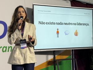 A liderança é a capacidade de influenciar, inspirar e direcionar pessoas para alcançar objetivos comuns, moldando culturas e resultados. Quando exercida de forma consciente, torna-se um poder que constrói, estimula talentos e fortalece equipes. No entanto, se mal conduzida, pode silenciar vozes, inibir ideias e comprometer o potencial coletivo. Com essa visão, Nicolle Vieira Pires apresentou “O poder que constrói ou silencia: o impacto invisível da liderança na cultura da empresa”. Na sua fala, ela mostrou que o crescimento ou a ruína de uma empresa pode depender de movimentos quase imperceptíveis, e o ponto de partida está sempre nas pessoas.