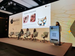 A dermatologista e diretora da SBD-RS, Dra. Laura de Mattos Milman (RS), mediou o debate ao lado das dermatologistas Dra. Nediana Bialeski, Dra. Rochele Machado Durgante e Dra. Gabriela Maldonado, e ressaltou a importância da região periocular nos tratamentos estéticos, destacando que ela é uma das primeiras áreas a refletir o envelhecimento facial e está diretamente ligada à expressão e às emoções.