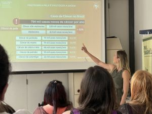 Durante a palestra, foram apresentados dados epidemiológicos que demonstram a relevância do tema. O câncer de pele segue como o tipo de câncer mais incidente no Brasil, em um cenário que registra cerca de 704 mil novos casos de câncer por ano no país. Desse total, o câncer de pele não melanoma concentra aproximadamente 220 mil novos casos anuais, o que representa mais de 32% de todas as neoplasias diagnosticadas. Já o melanoma, forma mais agressiva da doença, soma cerca de 8,9 mil novos casos por ano.
