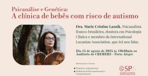 Com essa proposta, a Sociedade de Pediatria do Rio Grande do Sul (SPRS) realiza, no dia 15 de agosto (quinta-feira), às 19h30, no auditório do Conselho Regional de Medicina do RS (Cremers), em Porto Alegre, a conferência “Psicanálise e Genética: a clínica de bebês com risco de autismo”. O encontro é gratuito e exclusivo para médicos.