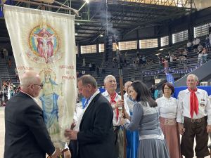 O ato inicial foi protagonizado pela chegada da Chama Crioula e pela imagem de Nossa Senhora Medianeira, simbolizando a espiritualidade e o vínculo com as raízes culturais do Rio Grande do Sul. Na sequência, ocorreu o ingresso das bandeiras Nacional, do Estado e do município de Santa Cruz do Sul. Representantes das 30 RTs ocuparam seus lugares no palco central, carregando os estandartes das entidades que compõem o MTG, em um momento de grande emoção.
